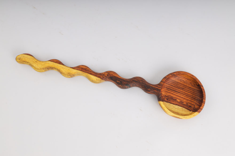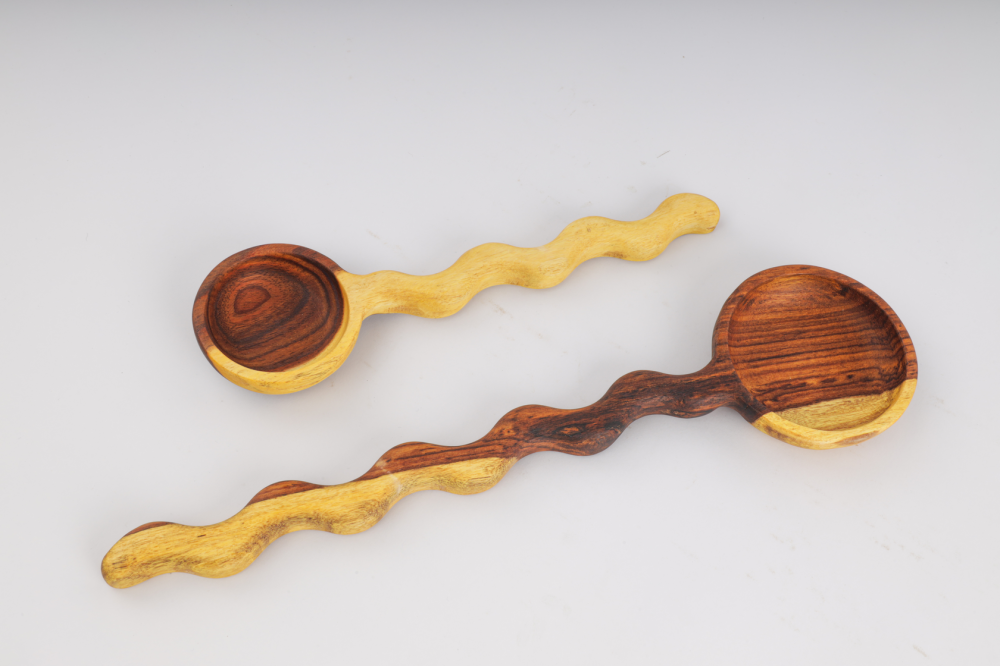 طقم ملاعق خشبية متعرجة قطعتين مقاس متوسط وكبير